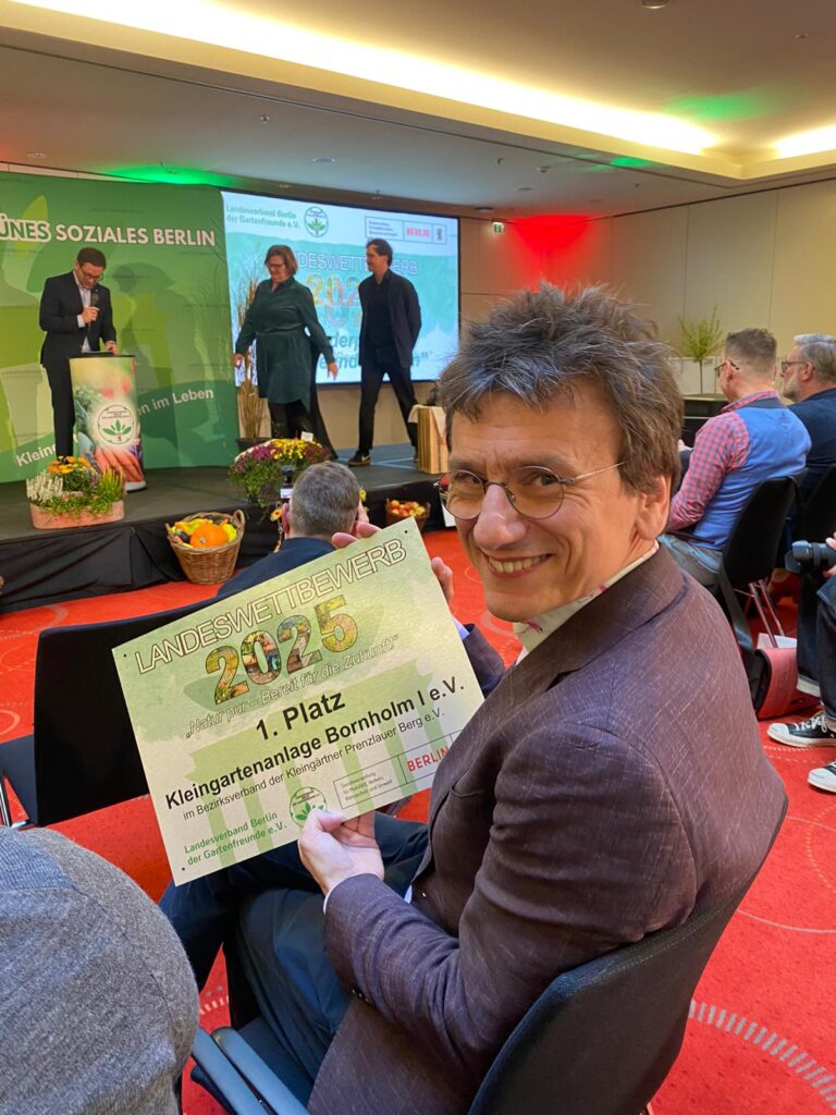 Wir strahlen immer noch: Am Sonnabend wurde unsere Kleingartenanlage Bornholm I e.V. zur besten Kleingartenanlage Berlins gekürt. Beim Landeswettbewerb „Natur pur – Bereit für die Zukunft“ des Landesverbandes der Gartenfreunde gemeinsam mit der Senats-Umweltverwaltung haben wir den ersten Platz errungen – als fast 130 Jahre alter Verein mitten im Prenzlauer Berg. In der Endauswahl standen 9 von insgesamt 870 Berliner Kleingartenanlagen. Dass wir am Ende ganz oben gelandet sind, erfüllt uns mit großer Freude und tiefer Dankbarkeit.